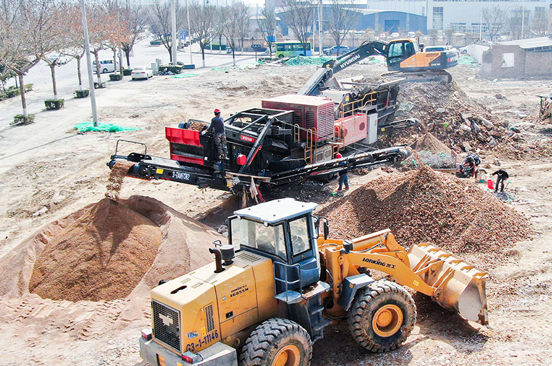 (紅星履帶式移動(dòng)破碎篩分站作業(yè)現(xiàn)場)